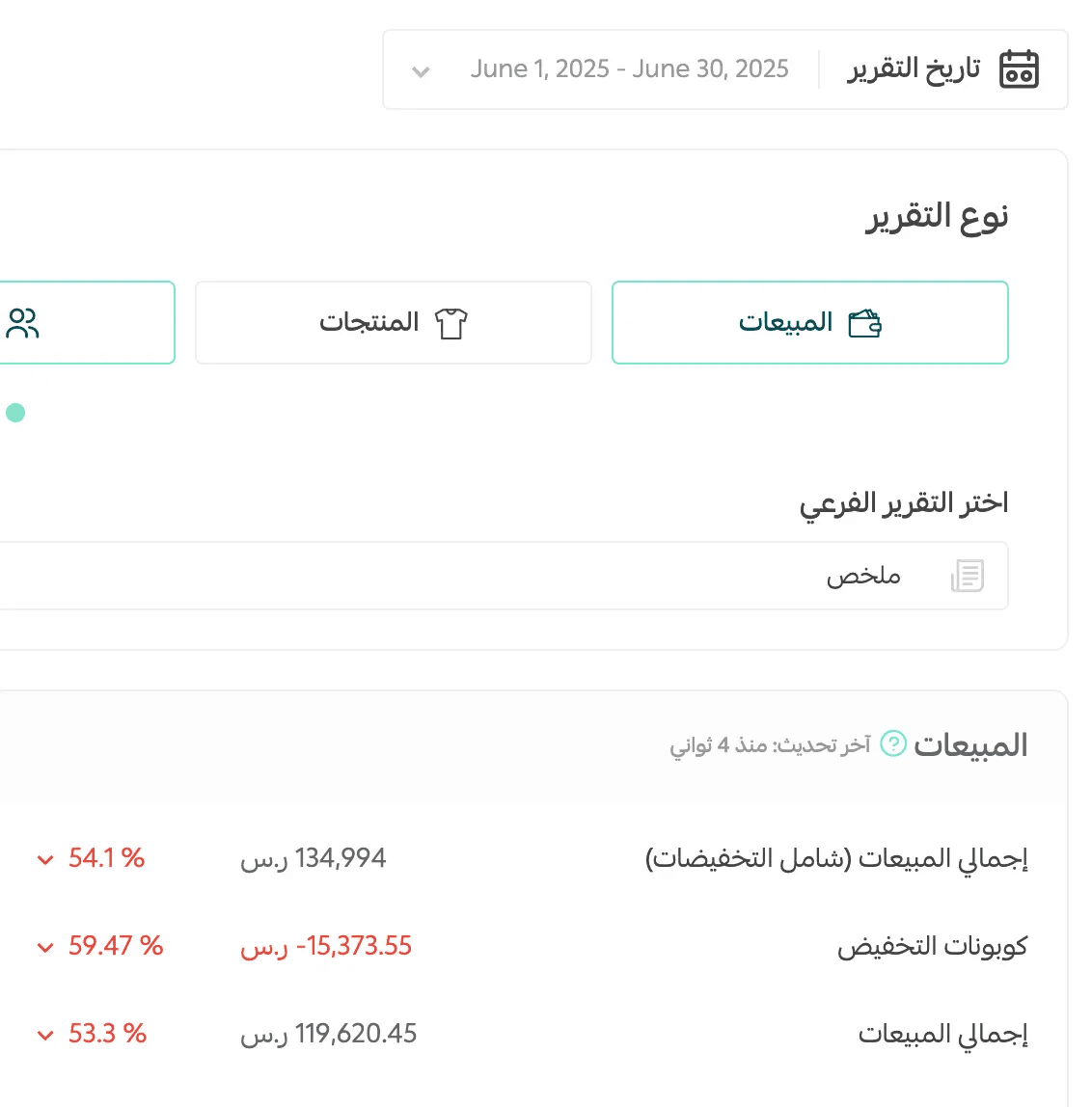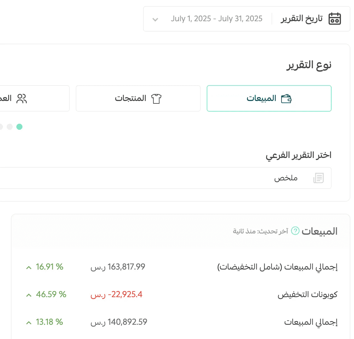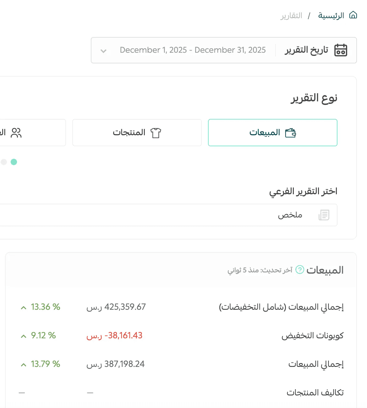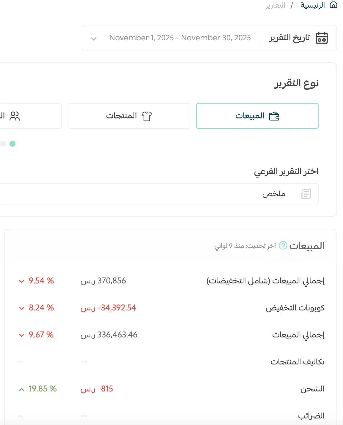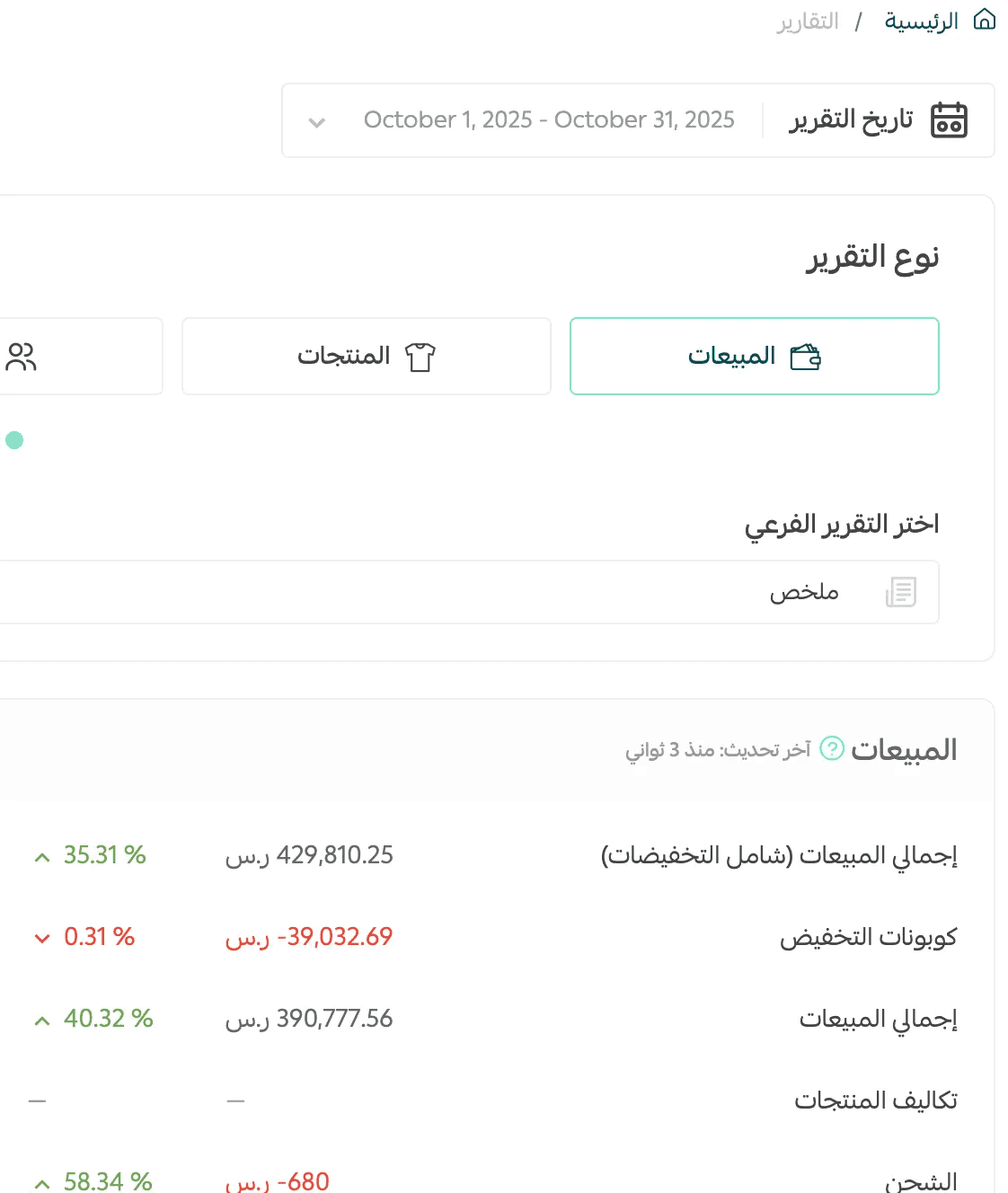 تشغيل ← تقارير ← انتهاء الشهر